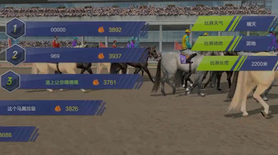进入到游戏比赛报名的界面,我们发现了游戏的四个可选策略,他们分别的效果是:甩脱:全程全力冲刺奔跑、抢弯;占先:起步冲刺直到成为头马,而且与第二名次拉开固定距离后不再进行冲刺,剩余耐力在最后阶段进行冲刺;如若距离缩小或者不再是头马,则会进行冲刺;后发:起步冲刺直到成为第二,如与头马拉开距离太大也会进行冲刺稳定距离,剩余耐力在最后阶段进行冲刺;如若不再是第二名次,则会进行冲刺;追逐:起步不会冲