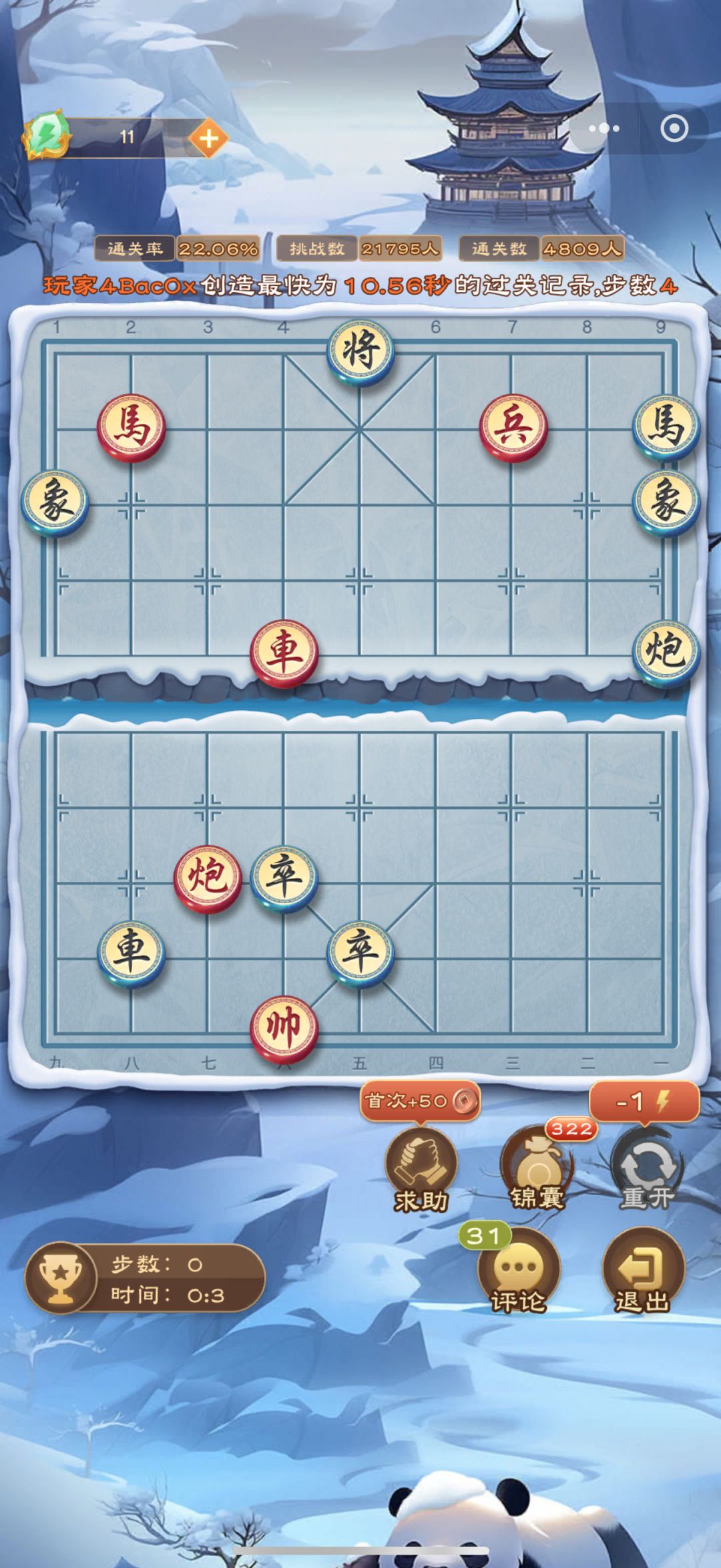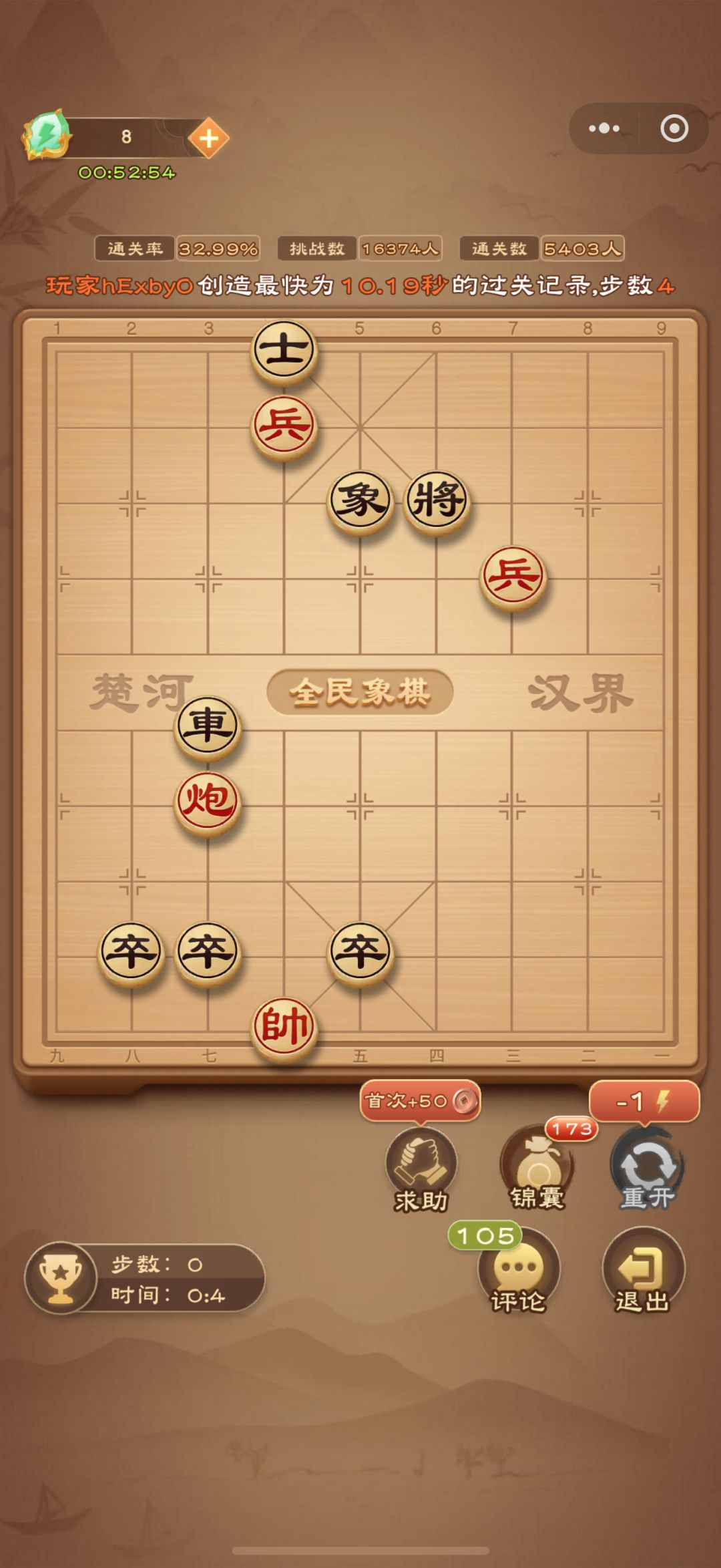 各位棋手晚上好呀!下面为大家奉上今日的每日残局攻略~ 马四退五 如果各位棋手有更好的解法,欢迎在评论区留言喔~