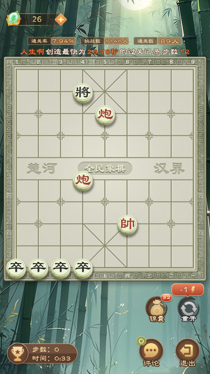 各位棋手晚上好呀!下面为大家奉上今日的每日残局攻略~1. 帅四平五2. 炮五退四3. 炮六平五4. 帅五退一5. 前炮进三6. 帅五退一7. 后炮平四8. 炮四退三9. 炮四平六10. 帅五进一11. 炮六平九12. 炮九进九13. 炮五进一14. 炮九退六15. 炮九平二16. 炮二退三17. 炮二平四18. 帅五退一19. 炮四平八20. 炮五平九21