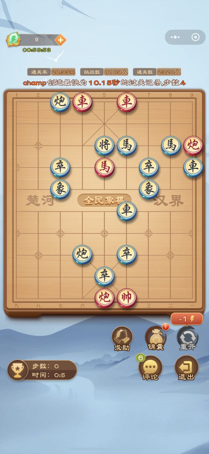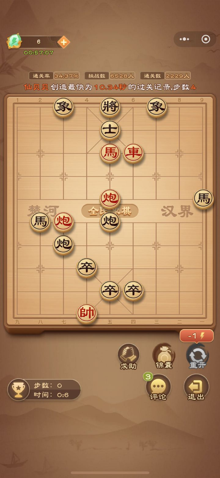 各位棋手晚上好呀!下面为大家奉上今日的每日残局攻略~1.车二平四2.马一进三3.车四进一4.车四退七5.车四进七6.车四平六如果各位棋手有更好的解法,欢迎在评论区留言喔~ 评论
