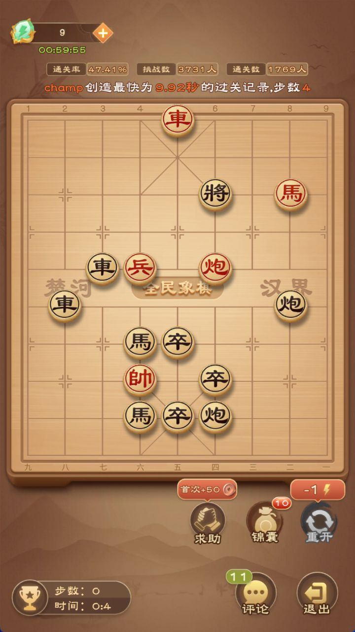 各位棋手晚上好呀!下面为大家奉上今日的每日残局攻略~1、炮七平四2、马四进二 3、炮四平五 4、兵五进一如果各位棋手有更好的解法,欢迎在评论区留言喔~