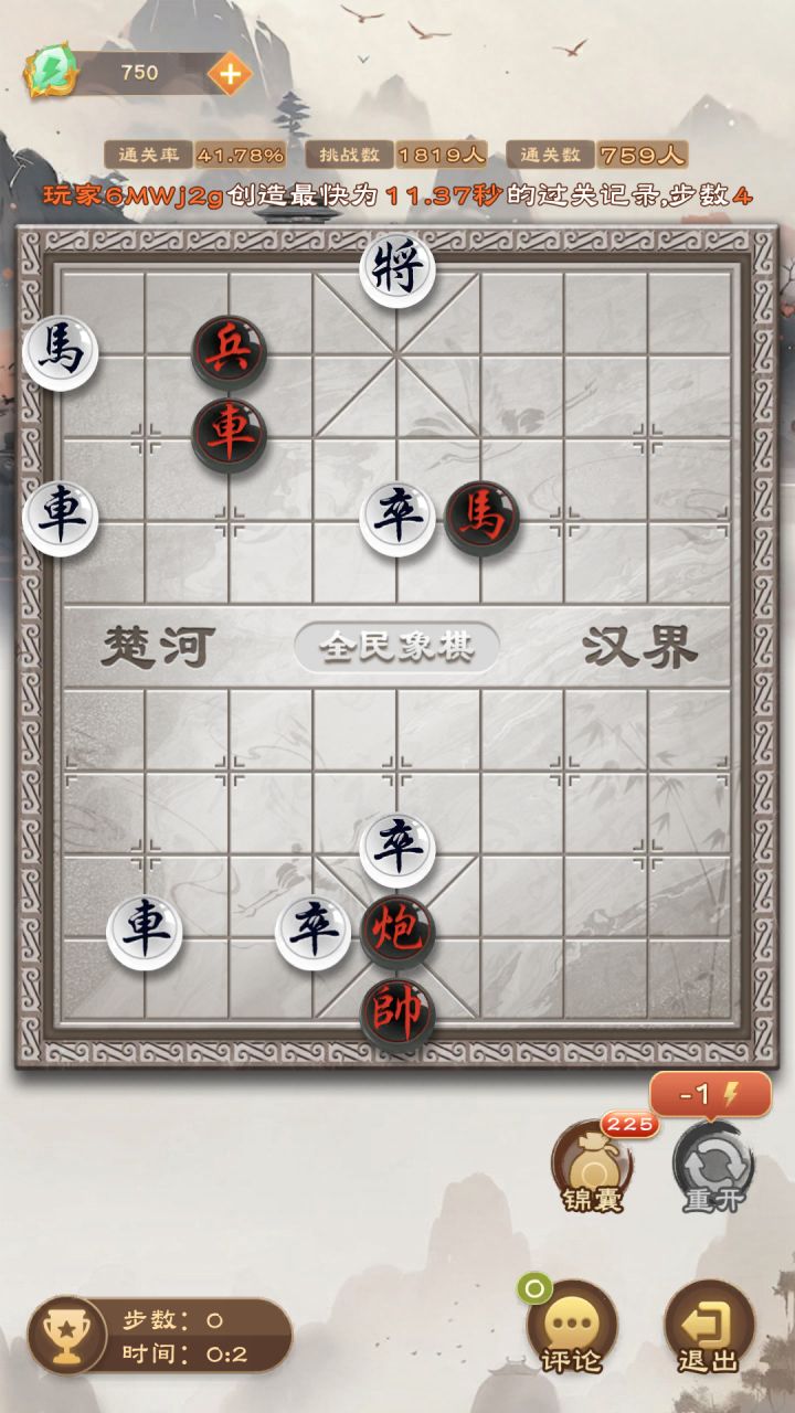 各位棋手晚上好呀!下面为大家奉上今日的每日残局攻略~1、兵四进一 2、车一退一 3、马七进五 4、炮二平五如果各位棋手有更好的解法,欢迎在评论区留言喔~