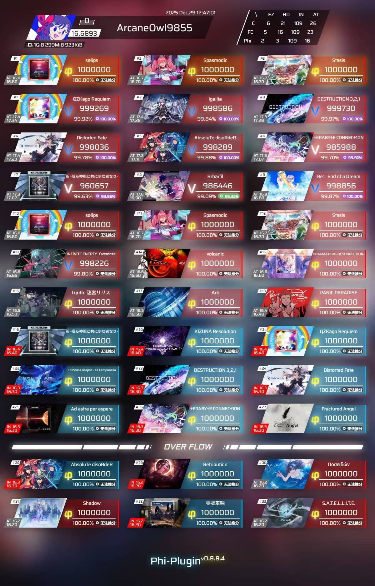 4. rks的计算我记得是按照综合难度和acc,最好的前20首以及所收的最高级别的歌,计算后得出的。所以要提升rks需要提高准度而不是分数,毕竟分数跟你的最高连击数也有关。如果rks想短期突破(冲个15 16什么的)可以上网上找工具把你这20首分别是什么算出来,再针对性的练