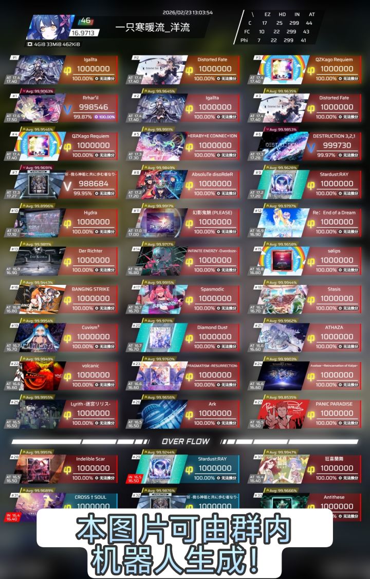 首先是它的成长体系,rks(Ranking Score)系统用一个简单的数值,就能清晰地量化玩家的水平,它不会让你因为某一首曲子打不好就陷入焦虑,而是靠你最高的30个谱面成绩来计算,鼓励你不断挑战自己、突破舒适区。很多玩家都说,看着自己的rks从零点几慢慢涨到10+、15+,那种一步步成长的快乐,是别的游戏很难替代的。而且游戏里的曲目解锁机制也很有意思,不是单纯的打通关卡,而是藏着很多小彩蛋和小谜题,比如隐藏曲目、异象谱面,探索的过程就像寻宝一样,总能给人意外的惊喜