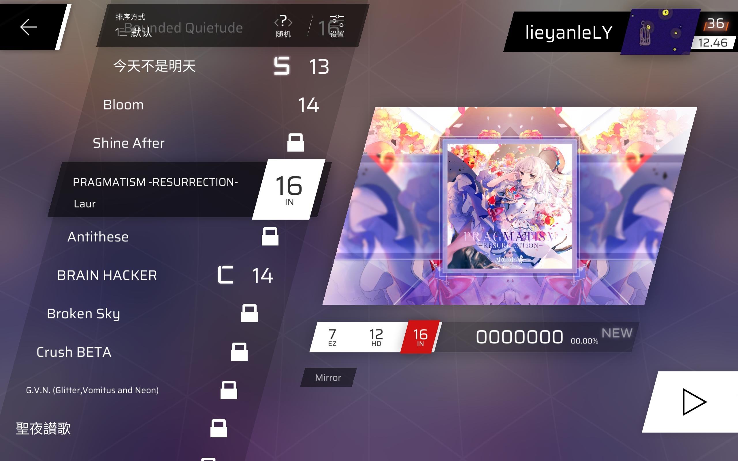 得分 0 994 987 评级 FC 最大连击 377/377 Acc 99.44% 提升前rks 11.93 提升后哦rks 11.97 提升rks +0.04 371P 6G 0B 0M Good:6E 0L 获得品 Phi币 1006KB #phigros得分