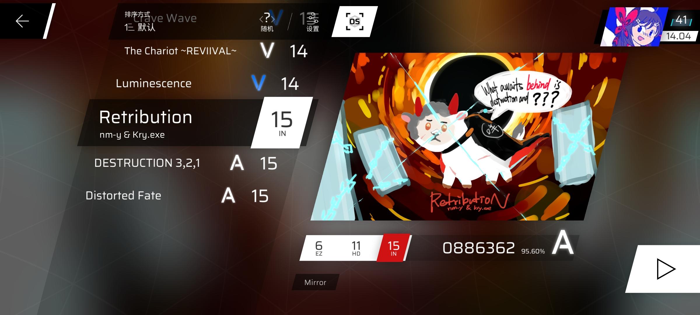 千万不要把rks设为主要目标! 千万不要把rks设为主要目标! 千万不要把rks设为主要目标! 我突然发现了一个很严肃的问题,当我的热开水到达了15之后,我就忽然失去了打歌动力。之前貌似一直是为了上15而去打歌,但一下子失去目标之后,就几乎没什么动力了。 于是我设置了一个荒诞的目标,把iga的AT打上A。 现在天天被暴打,失去了信心🌑 所以,千万不要把rks当成自己的唯一目标,否则当你达成了之后,