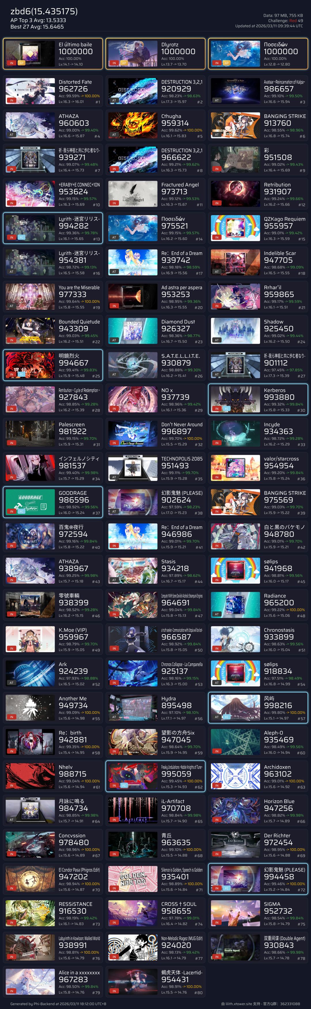 定数翻新后第一次制作定数表。以便为后续做视频提供参考。事实上我已经很久没有关注圈子的事情了,我不太清楚能不能做好小姐系列,尽我所能吧。 首先很开心能全连Phigros现最难曲,堆了1200来pc,接下来up以个人经验来随便聊聊这谱。希望对您有帮助。 准度很一般,不过还是想做个非专业的个人解析,推全连的小伙伴可以参考一下。 首先开头没啥好说的,双指和多指都能打,右下角双押后蓝键可以使用无名指接,不过