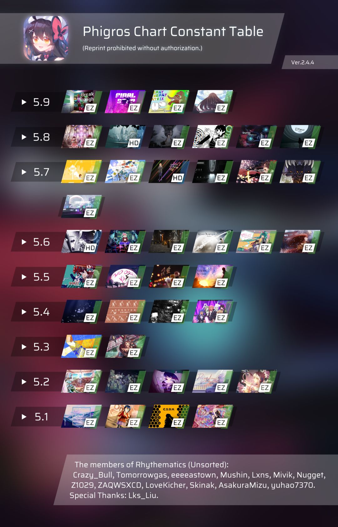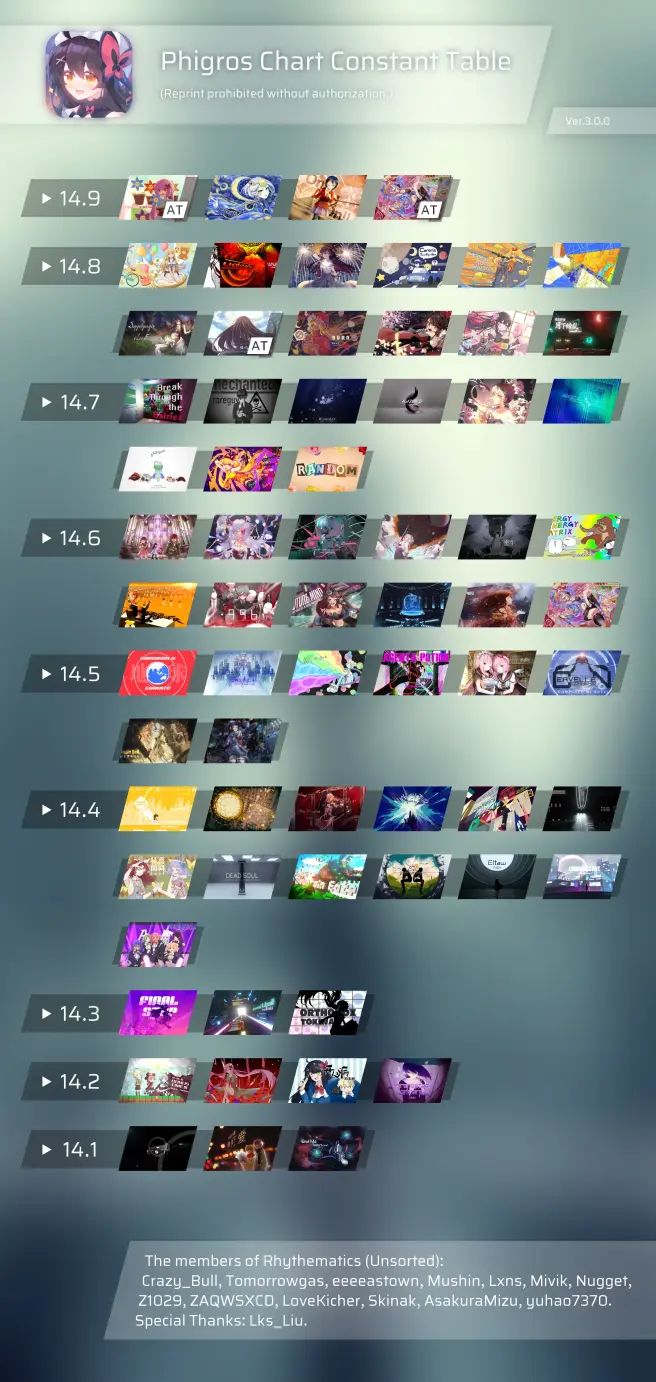 phigros3.0.0最新定数表更新(13.1-16.8)
