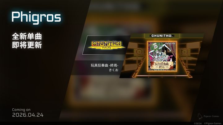本次更新将带来与街机音乐游戏「CHUNITHM」二次联动的一首曲目。