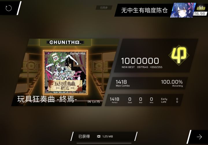 我去我去,我发现我好牛逼。所有博主都在劝说不让越级打我在我rks只有8点多的时候,我就敢打 15,16级的歌后果也是非常显著。玩两年了,虽然说中途经常会出现半年都不玩的情况但我的手癖非常严重,而且到现在为止我那个账号找不回来,我换了6个账号,我的rks只有12.14然后我又不是个很有耐心的人,经常换账号之后又不想打,所以说就放着三四个月不带开一回