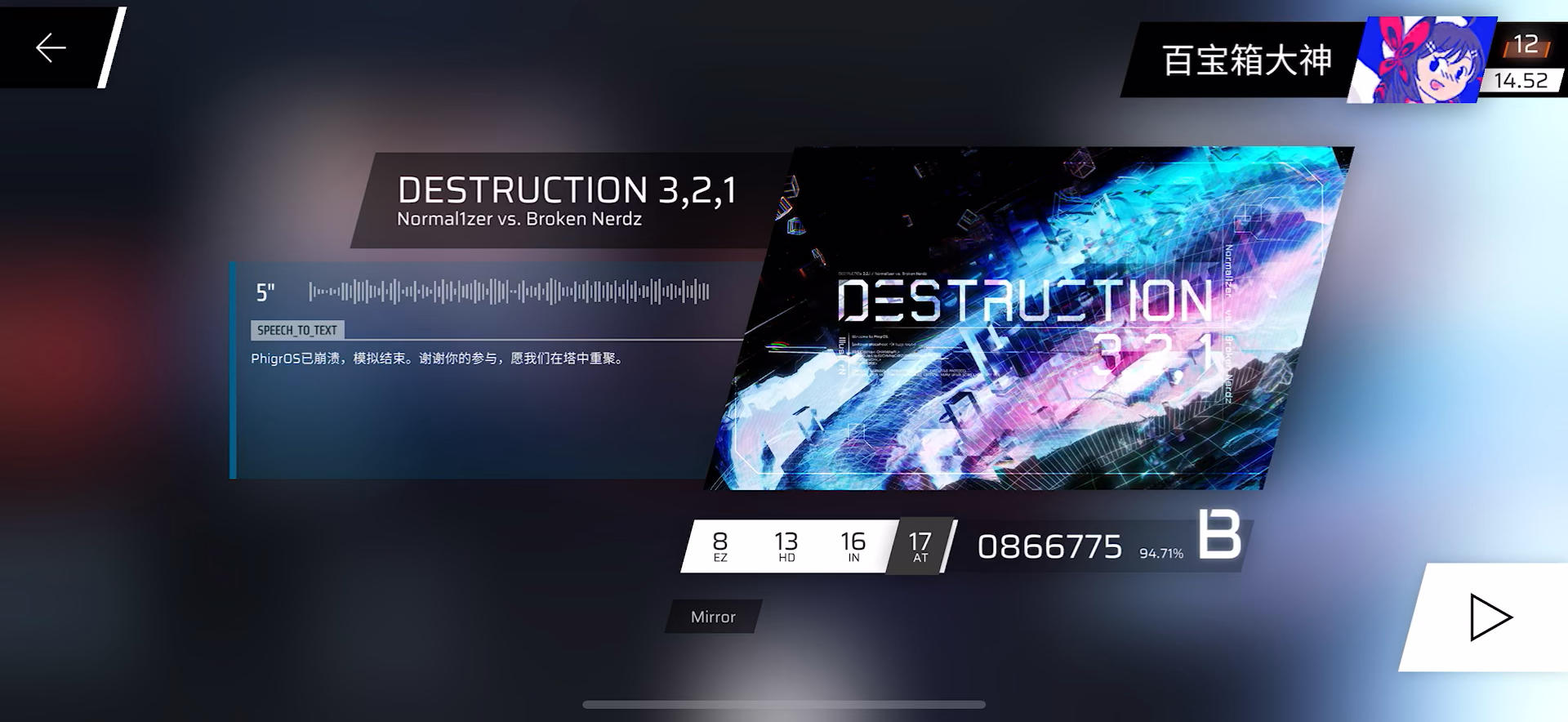 擦边进s。 打起来挺爽,就是硬扛子弹挺困难的 #phigros #phigros不鸽指南 #phigros魔王曲 #phigros痛苦瞬间