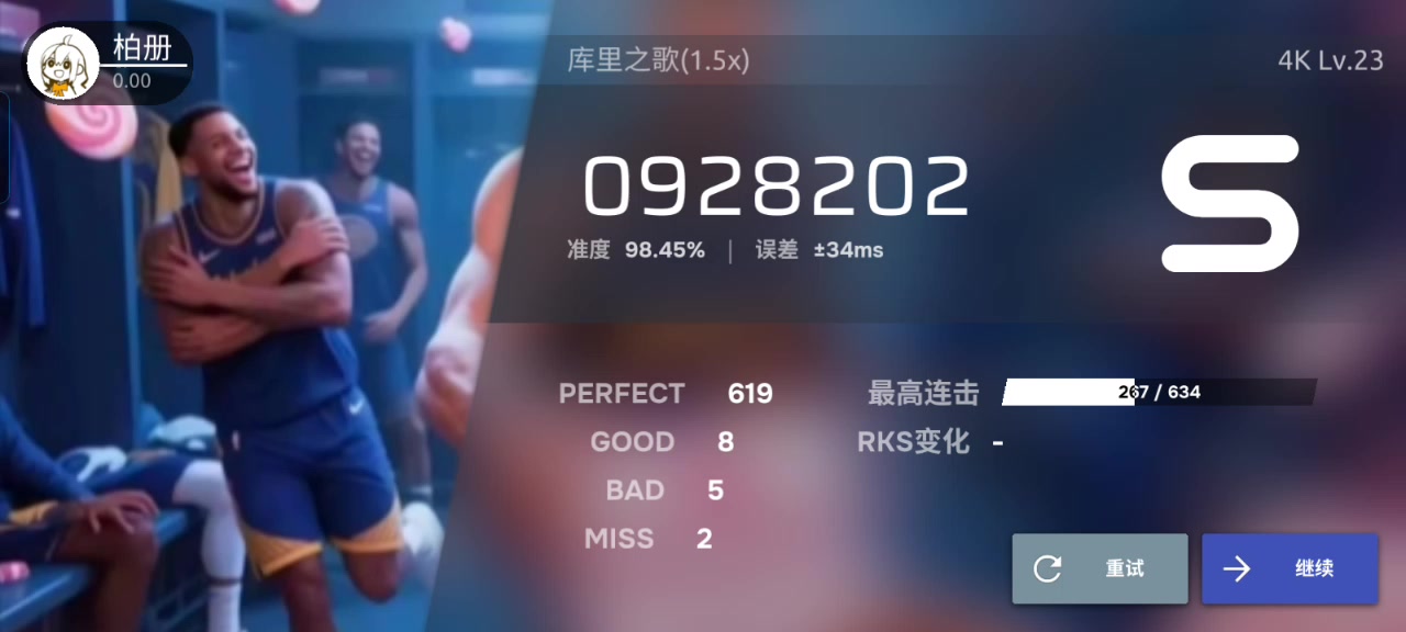 一个晚上涨了1左右,hd的glaciaxion当然也是打 了一个晚上都没收—— 特别是当突然发现我线还金的时候, 或者我这次居然接住了, 或者这把很顺利啊, 打这首曲真的能爆收藏吗,为什么我只爆kb 遇到垂直分布,红蓝交互,中心对称上下或左右分布的谱依然原地爆炸 有一些lv10努努力能上s,但是有一些lv6卡死A 第一次玩某张谱准度低很正常(苦笑 有一点点进步 已经能把hd萤火虫轻松打上s了(准度