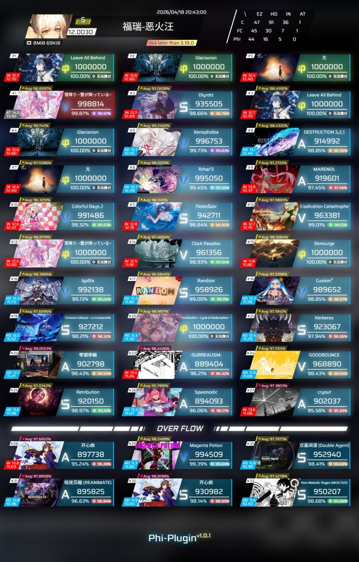 至此,一锤定音,尘埃落定😈历时235天,从0到15.5😎最后一击:AbsoluTe DisoRdeR IN16.3也是有惊无险渡劫15.5了,接下来和考虑收歌(P位现在太牢了🤬)—————————————————后面会写长帖和自我介绍,顺便整理一下我以前的帖子🥰先这样吧❤️ ——2026.4.18#phigros #phigros萌新