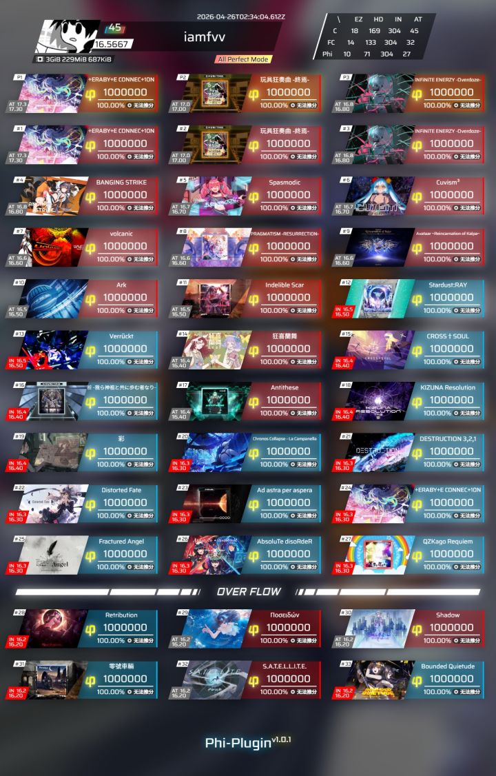 我去一回家发现Phi竟然拿了玩具狂奏曲ヾ(^∇^)我竟然在phi里玩到了Kikuo的歌✋😭✋phigros我喜欢你😋😋😋其实中二章节是唯一一个五首歌都有at的联动章节哦(憋憋 听曲再看定数已经知道是鬼谱了😡差点没解开at我大概这辈子不会碰IN了🙏开头被闪死了😱其实这张是超级协调谱就考协调底力什么的都路边👊209~259是第一个难点单手3k都管不了另一只手的双押了👊👊👊