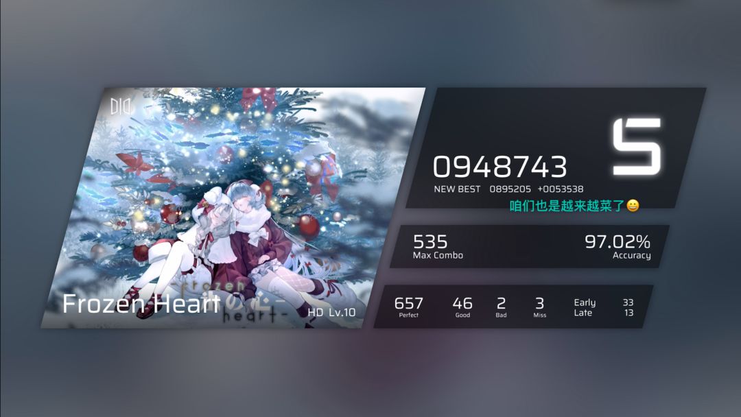 小咩兔脑洞大开,音游人脑袋裂开()非常创新的配置使得我初见取得了87.3w的好成绩()但也就是大量初见杀配置把它撑到了17.0,论多指难度,明显没有17。昨天晚上熟悉sv段节奏后一鼓作气从98%左右打到1-0-2。今天下午推了大概半个小时,于2:05p.m达成17级首杀,并且吃到了0.03rks小咩兔这谱子神中神没的说