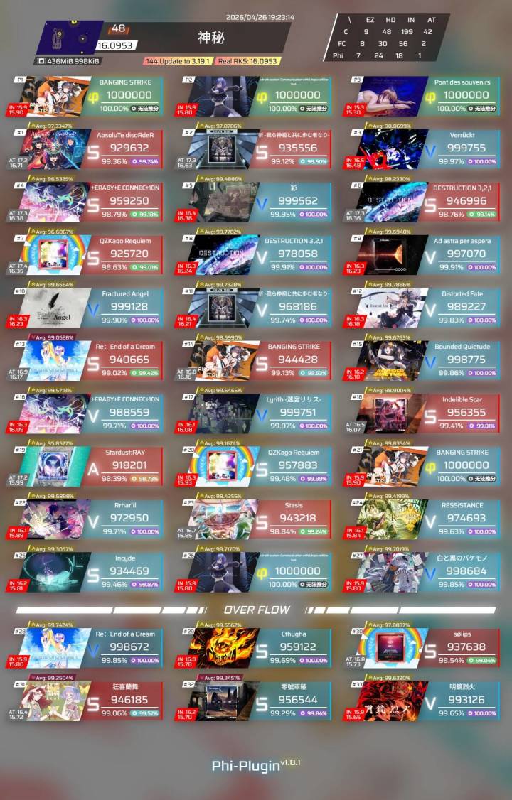 最后看了一眼全部歌曲的排行,居然在321之前,EZ最后一首懒得解锁没打……一堆假note给我裤衩子都骗没了[表情_嫌弃][表情_喷]#phigros