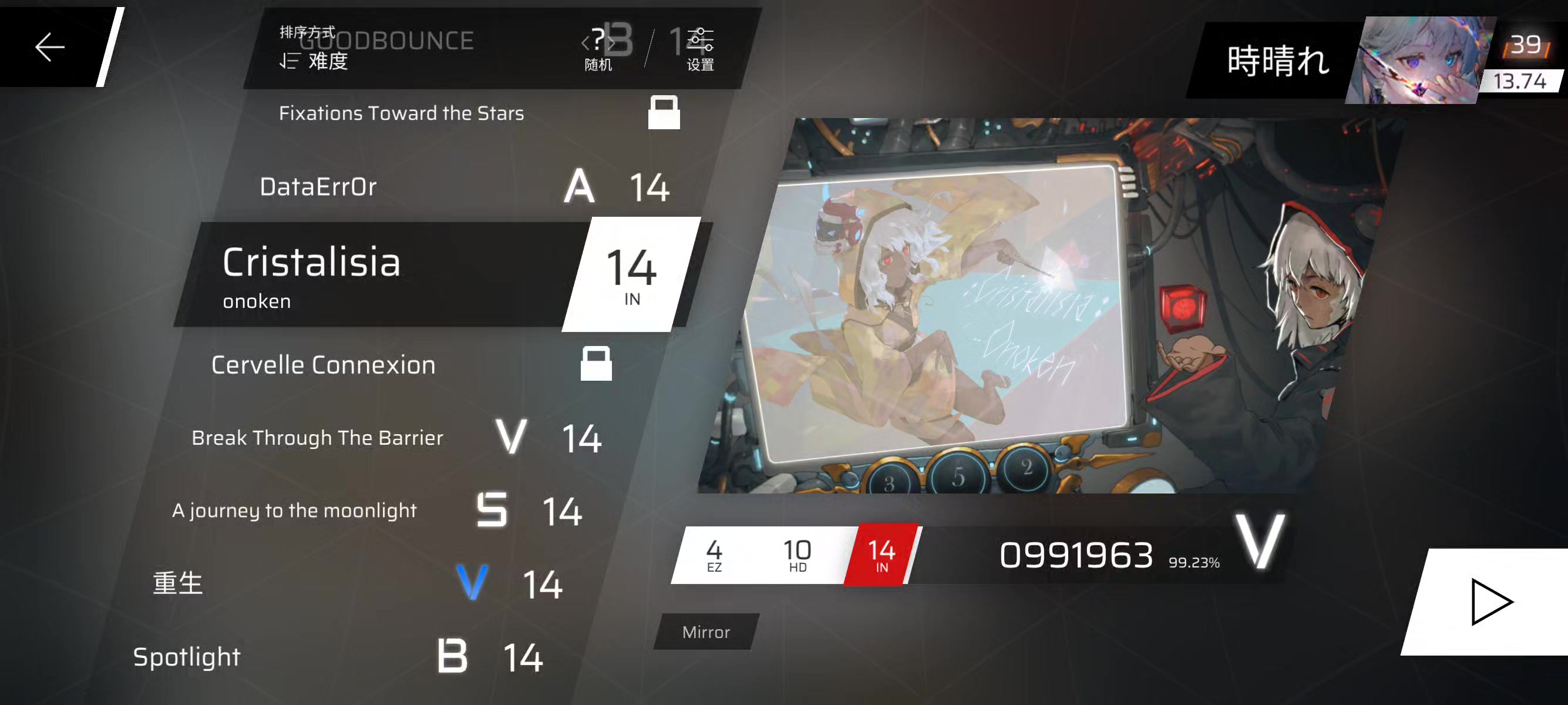 一般通过。 之前缀梦音游展和摊主PK时随到了这首,那时候纯初见,GG。 #phigros #手元 #音游