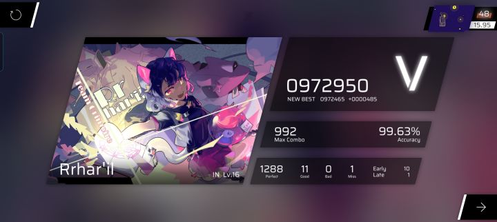 😱😱😱+0.02六见FC!!!刚初见时还是个13.26的小彩笔,被这个打出了心理阴影,所以初见之后再也没碰过😭今天偶然间略过它,想着打一下应该也不会低到哪里去,于是打了一把(然后准度只有97.4%🙁)第二次和第三次看懂了,然后回来再战,打到第五次(六见),成功拿下FC!😋👍现已15.36,可以冲15.4了(超小声)#phigros萌新 #phigros