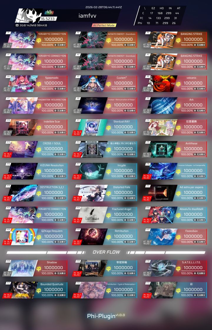力竭了 完完全全能P 可惜糊黄键糊早了 遗憾退场 又浪费一个寒假😘😘😘 #phigros #phigros不鸽指南 #phigros不鸽指南分享 #phigros收藏品 #phigros曲师 #phigros查分攻略 #phigros魔王曲 #游戏日常phigros萌新 #节奏大师联动phigros #音游phigros