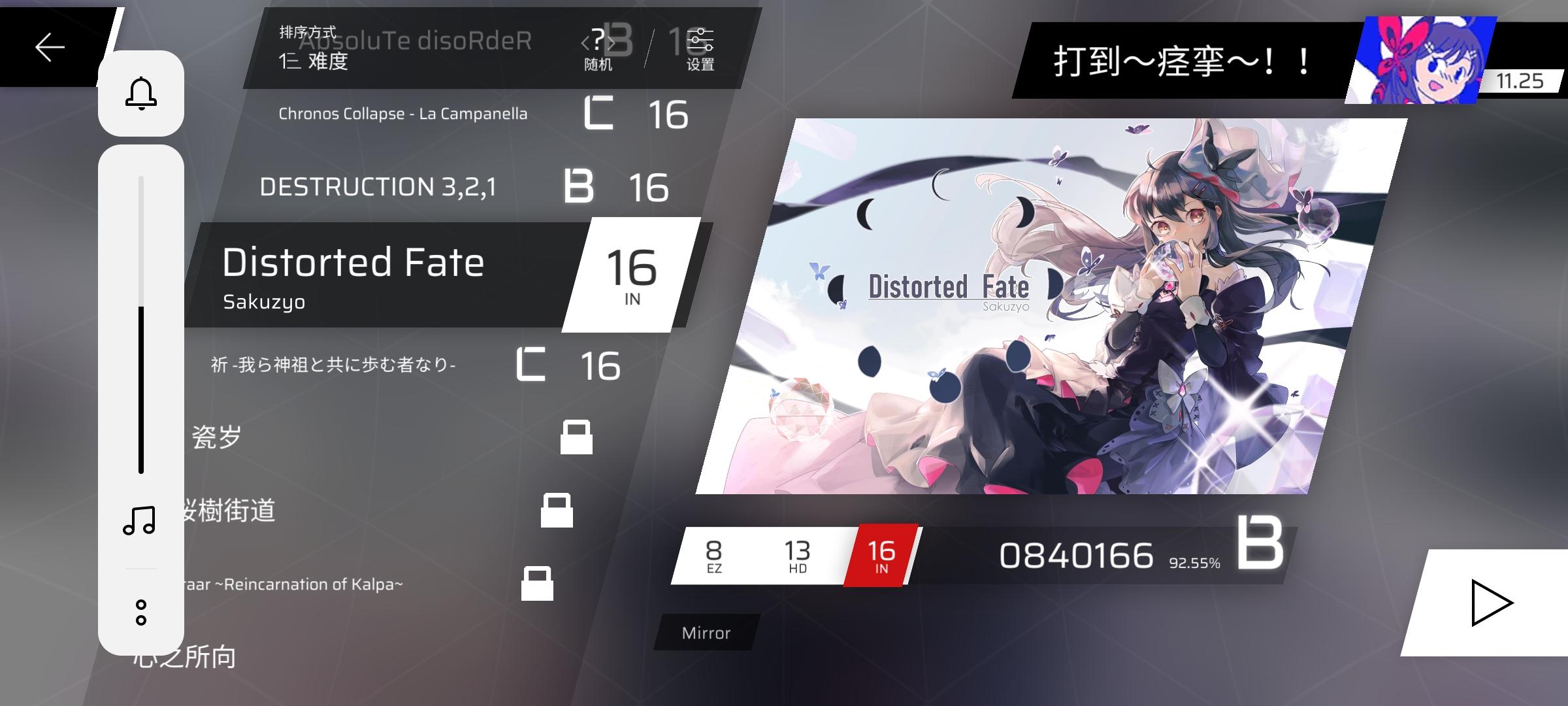 14岁生日如约而至!!!13岁一整年过的太快了,感觉13岁生日还在昨天😭😭😭非常开心的是收掉了P1!!!是我之前最喜欢的歌,今天终于!!!上次过生日rks15.74(定数未洗牌)≈16.03这次16.43!(可见我之废物)挑战在接下来的时间里AP李老头和恐慌天堂AT🎉🎉🎉🎉🎉🎉🎉🎉🎉🎉🎉🎉🎉🎉