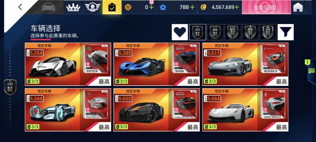 此篇建立在上,请先阅读霸主车篇 提示:本帖只针对易获得且较为好用的车,由于D,C两级霸主车比较容易获得,所以没有再重复介绍 有问题或建议可以评论区提出 B级: gtr:加速战神,极速偏低,漂移半径尚可 紫蛇:极速比较高,操控偏低,半径很大 蓝牛:极易获得,只需完成每日任务,性能较为一般,半径较大 火神:蓝牛的极速加强版,半径比蓝牛稍大 488:极速挺好的,其他三维很一般 J50:同488 H2:极
