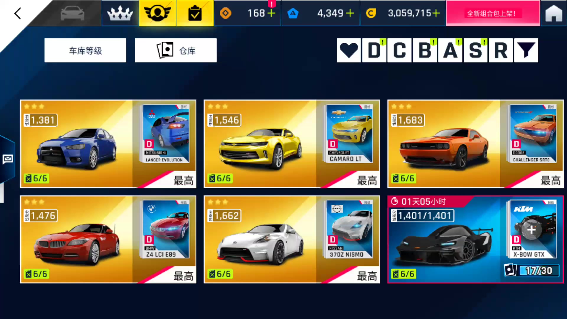 之前一直玩自动挡,最近痛苦的转型收档,跟新人分享一下我的瓢车心得。D级车只要生涯打过就差不多吧;C级车野兽要刷任务,福特要等寻车;B级车刷刷日常把奔驰车刷满,小牛随缘;到了A级车,想要A霸车,或肝或氪,出了活动不要错过,最近腾风热销,手里有蓝币的可以考虑购入升满星(郁闷,007这次还是陪跑了);S级车很少,目前还能稳定白票到满星的就6辆,其中复仇还算好用。之前杰哥钥匙返场,杰哥算是能用蓝