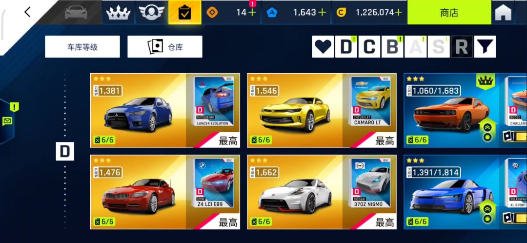 之前一直玩自动挡,最近痛苦的转型收档,跟新人分享一下我的瓢车心得。D级车只要生涯打过就差不多吧;C级车野兽要刷任务,福特要等寻车;B级车刷刷日常把奔驰车刷满,小牛随缘;到了A级车,想要A霸车,或肝或氪,出了活动不要错过,最近腾风热销,手里有蓝币的可以考虑购入升满星(郁闷,007这次还是陪跑了);S级车很少,目前还能稳定白票到满星的就6辆,其中复仇还算好用。之前杰哥钥匙返场,杰哥算是能用蓝