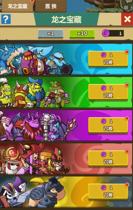 龙之宝藏通过消耗龙血珠,可以进行对指定的阵营进行召唤。有几率获得对应阵营的英雄碎片。每一次召唤都将额外产生一定数量的龙血碎片,该道具可以用于英雄置换。龙血珠可以通过活动、酒馆、集市购买获得。英雄置换英雄置换,消耗龙血碎片,可以将英雄置换为同阵营、同星级的其他英雄。对置换结果不满意的话,可以通过取消保留原英雄,但是消耗的龙血碎片不会返还。幸运探宝1枚奇迹币可以转动一次转盘,8枚探宝币可以十