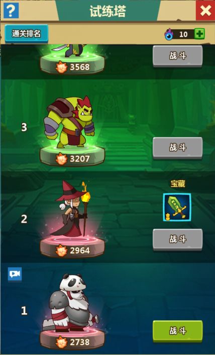 试炼塔是获取资源的重要地方,英雄进阶所需要的材料这里每一关都会产出,想要凑够英雄升阶的材料,这里是必不可少的。通过的层数越高,资源的产出就越丰厚。试炼塔中战斗开始前,可以查看对方阵容的光环加成,同样的,我们也可以配置不同的英雄组成不同的光环加成,用来克制敌人。而在右上角还有一个录像机按钮,点开后可以看见以前的勇士的通关录像,可以通过看录像中的阵容搭配,来调整自己的阵容。通过阵营克制以及光环加