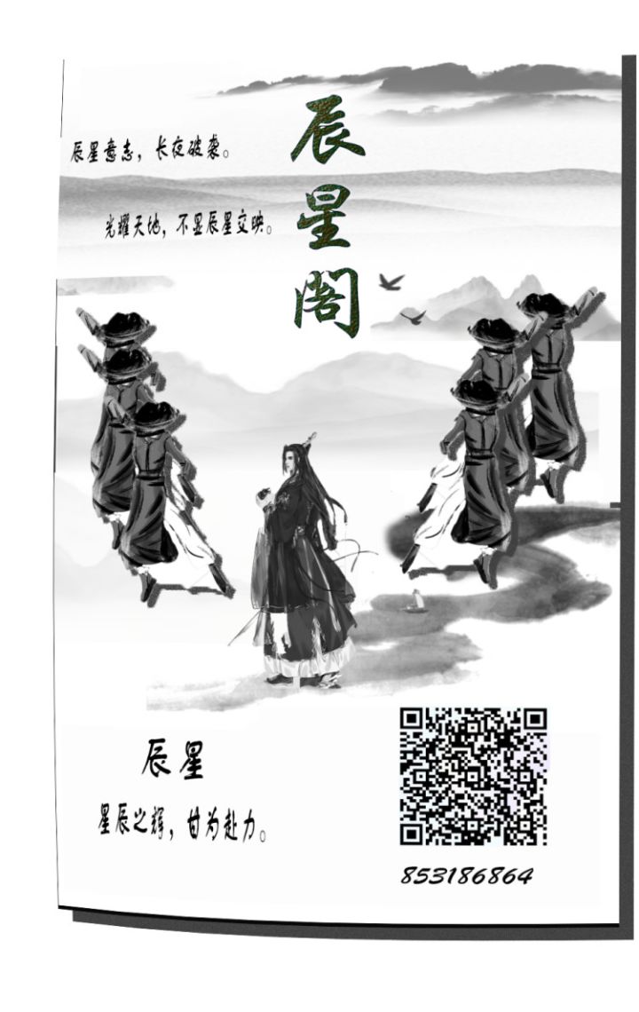 天下英雄出我辈,一入弈剑岁月催。入神霸业谈笑中,不及阁友一相馈。平明御气看刀声,侠骨铮铮听剑飞。辰星一阁人如水,纵横江湖几人回。