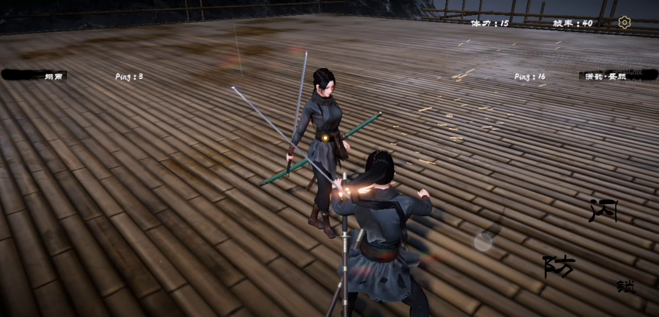 我单剑,他miao刀,我一个回剑式飞他脸上,他也不知道用啥招和我怼一起了,然后双方就如此僵持,直到某一刻,我赢了,但是我们俩还在互怼……