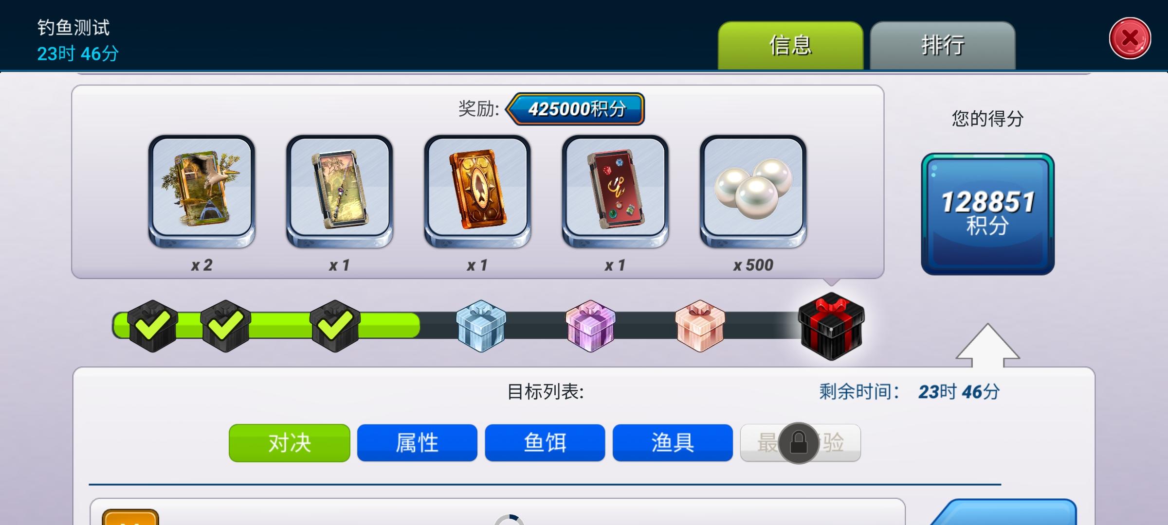 今天打锦标赛的时候发现自己对手的个人信息都是能看的,就点进去看了看,发现有不少人虽然在这场锦标赛里分数不算太高,但是历史战绩相当不错很多他们拿下记录的传说鱼什么的我都还没见过,看来我也得加油去把自己的记录弄得牌面一点了