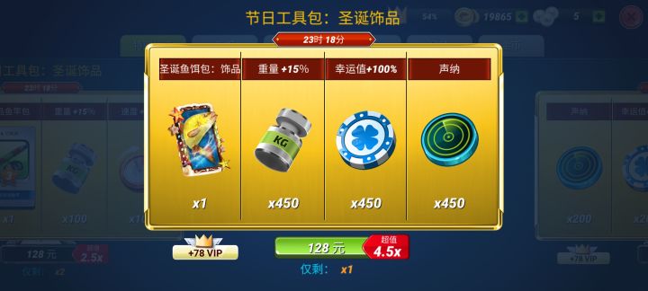 今天没事逛逛商店,本来想看看有没有免费的礼包可以买,可惜让我失望了。但是我发现了一个超级实惠的大礼包,哈哈!大家也可以看看新上的128大礼包,特殊鱼饵暂且不说,就3样最重要的钓鱼道具全是450个啊,太特么给力了,我都怀疑是不是游戏上错价格了。。。没道具的赶紧入手吧!