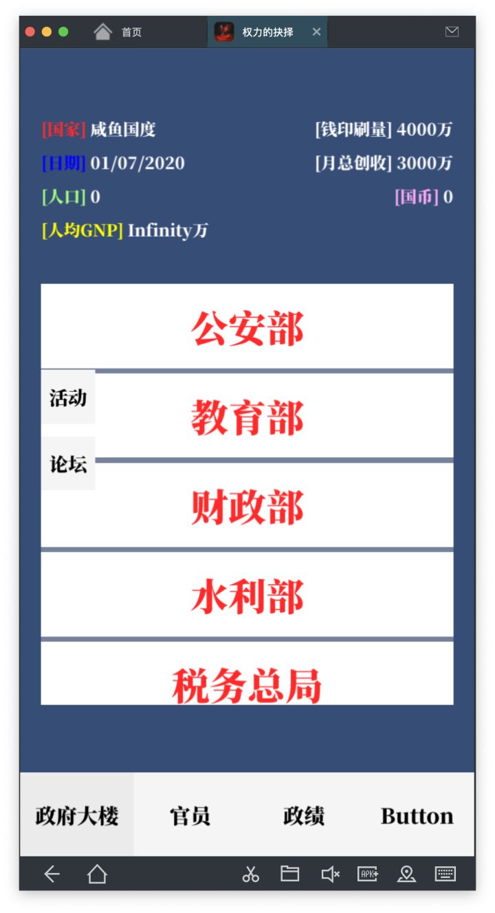 即将加入:科技树,军事结构,官员管理,敬请期待!