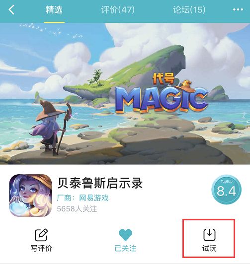各位术士,很高兴能与大家再次相遇,本次《贝泰鲁斯启示录》(原名代号:Magic)第二次iOS TestFlight测试将于5月9日13:00-5月15日20:00启动,测试期间服务器全天开放,快来一起愉快的玩耍吧!-------------插播广告-------------【下载方式】(iOS)取决于您TapTap客户端版本,一共有两种下载方式第一种是在TapTap 手机客户端中有试玩按钮