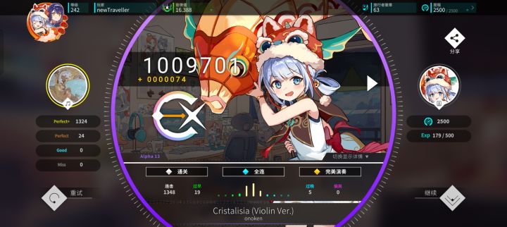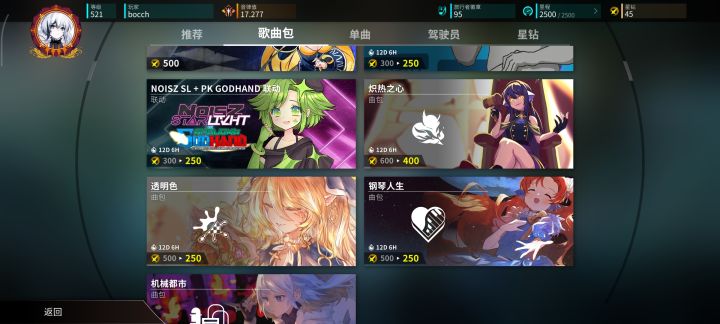 🎵曲库:这个游戏,有超过2/3的曲包都要付费 (游戏官方也要赚钱的(ಡωಡ) 毕竟跟很多游戏联动过),总共有300多首歌,这是让我很出乎意料的,我还以为顶多一百首歌,不过我建议先尽量把自己的 rks(音量值评级) 达到 6.000 以上再考虑要不要氪金,总之还请斟酌斟酌再斟酌⊙ω⊙,嘿嘿,如果有自己喜欢的曲包,可以先搜一些相关视频,看看谱面和整体难度符不符合自己的需求,要不然买了曲包花了钱就退不了了。 简而言之,曲库这方面的量不用担心, 玩一年都玩不完 |ω・)
