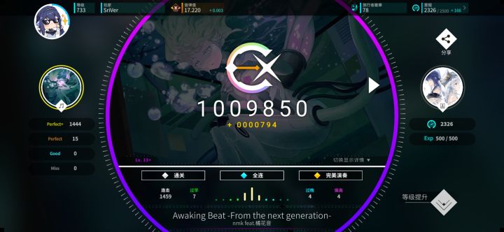 活动:官方每上一个扩展曲包应该都会开一个挑战活动,每期大概一个月(没仔细数过),分为三种类型,大致都是打歌按成绩给积分拿奖励(角色、徽章、限定歌曲等),有时候打的歌会带有特殊模式,像是给你替换个音符类型之类的(打着很史但是给的积分也多)