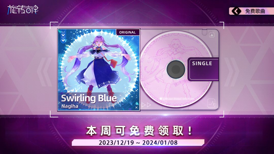 共庆此时!连续4周领限免单曲! 本周可领—— 「Swirling Blue」by Nagiha 领取期间到1/8! 记得前往游戏内商店领取。