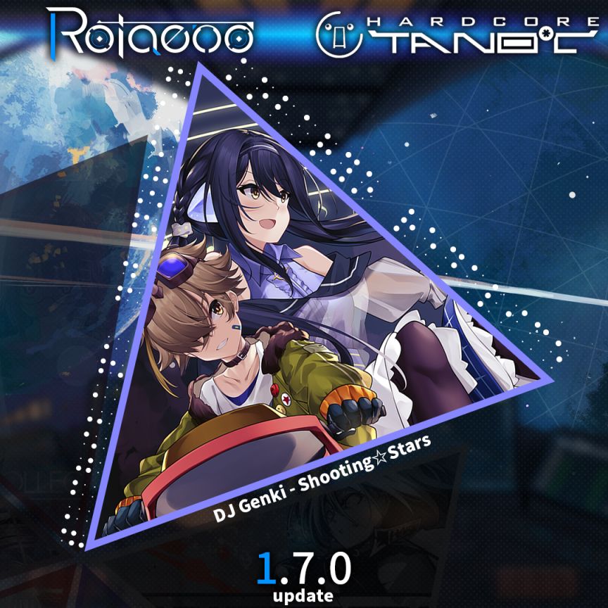 一道流星划破夜空,是你在远处想念我吗? 想诉说的话语已堆积成山,先允许我今夜做场美梦吧! Shooting☆Stars By: DJ Genki 该全新原创歌曲将登场于国际服2月28日追加的「HARDCORE TANO*C 联动」歌曲包。