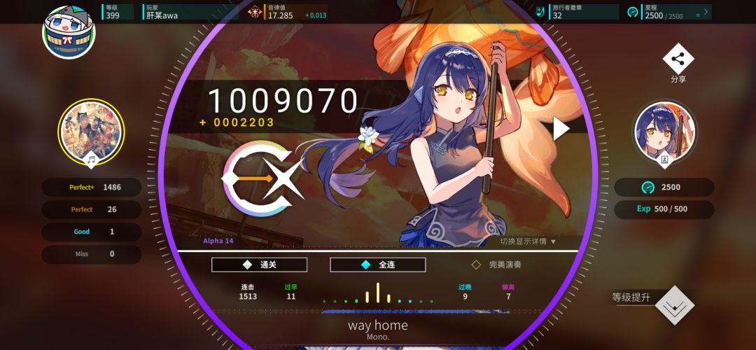 旋转音律怎么提升音律值?有什么方法?音律值的提升可以让你的分数获取的更高哦,所以想要提高高分就要从细节开始,具体的音律值提升方法下面来告诉给大家吧,快来看看详细攻略~ 旋转音律音律值提升高分技巧 已知音律值由b拔和r拔组成,提升音律值的两个办法很容易就能看出来,就是提升b30和r10。由于r10不稳定,会随着你的成绩下降,所以我们平时推分,需要提升的一般为b30。 提升b30的方法: 图1是我昨天