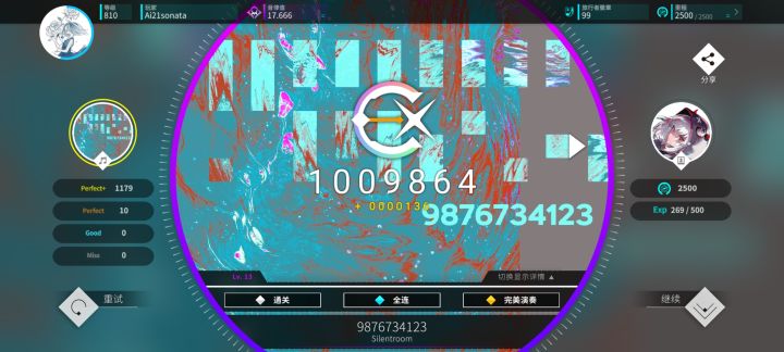 终于把所有真免费曲收集齐了,免费的唯一一个α难度也ap了,希望全AP之后Rating能达到17.1吧