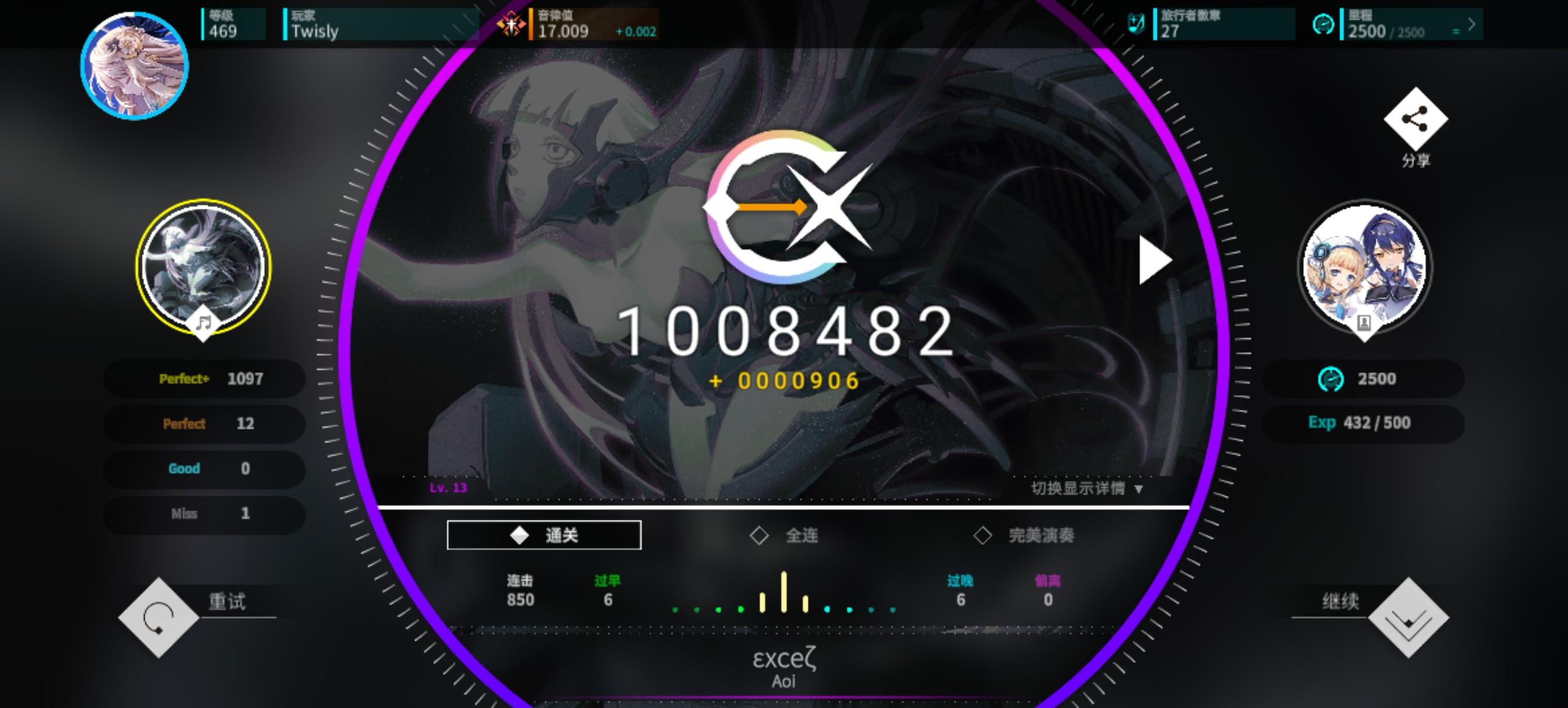虽然没有AP或者FC,不过至少知道怎么打啦!分数的波动现在只取决于我的状态啦,AP是迟早的