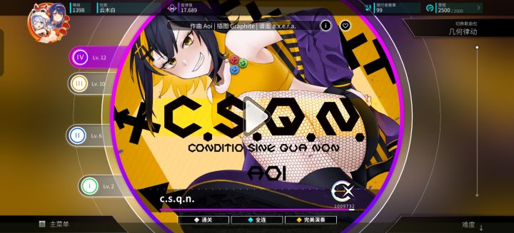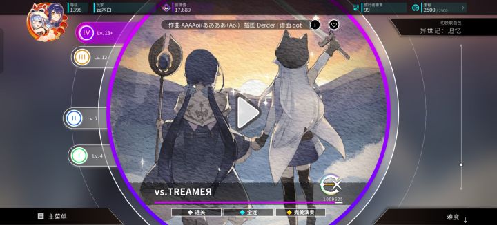终于把所有真免费曲收集齐了,免费的唯一一个α难度也ap了,希望全AP之后Rating能达到17.1吧