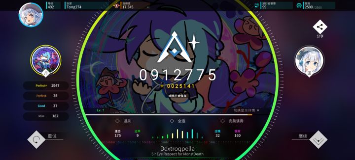 没状态了,打不动了,明天再说。[小猫烧_躺]不过Rating又涨了,好诶~#旋转音律 #旋转音律Rotaeno #Rotaeno #音游 #音乐游戏 #体感游戏 #累了 #开心 #春月 #SpringMoon