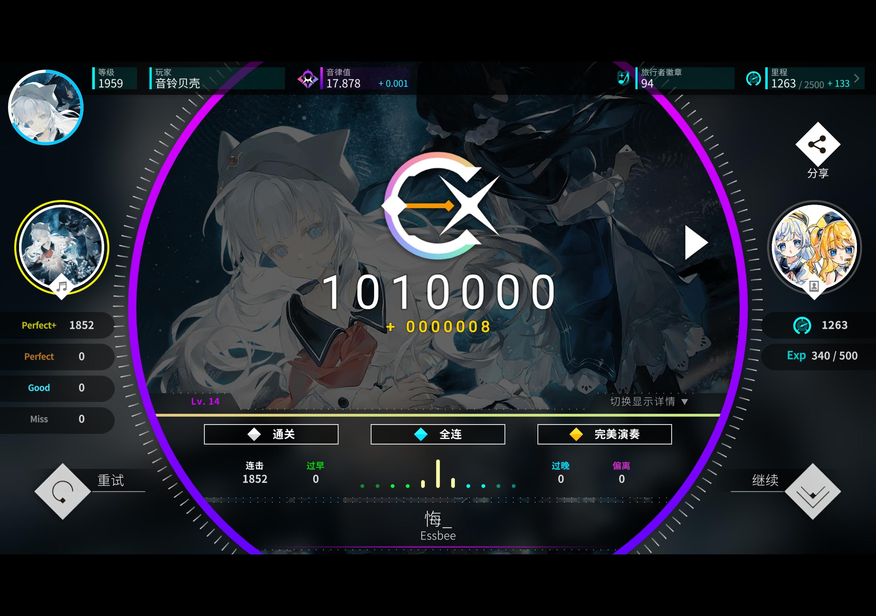 没想到今晚可以猛猛推分()可惜终梦了,开局交互打少一个tap()ap曲目+2()