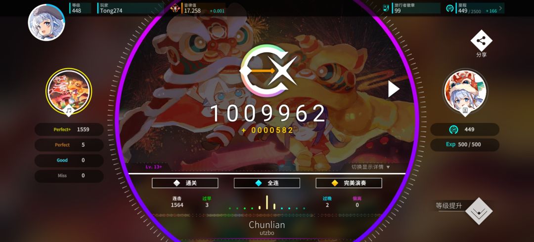 收获满满的一天!太激动了,虽然最激动的是最后一个,cv理论14.3全曲理论的最后一块拼图,终于拿下了,不过还是用了7.5的流速逃课了慢速,真不知道会打这玩意的到底都是什么东西,太难了,理论一次再也不想碰( )同时今天是方向盘第二次新年更新了(去年是新时代公募曲包),更新了2025宇宙电台曲包,更新曲目依旧质量稳定,但是刚更新游戏不知道为什么,手感不好,画面经常卡顿延迟不固定,所有东西都拖到了晚