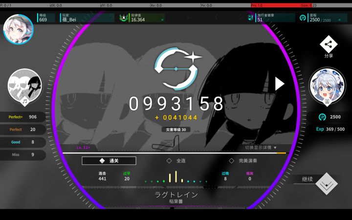 看起来中杀第三阶段需要专门录像校正一下才能突破了还有一把3miss的,其中两个在中杀第三阶段incyde解了(怎么懒到现在才解),感觉读谱比较难,但是速度要求大概是比phi侧纯良一些的((
