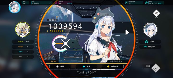 达成于2026/2/18 21:37:37 第四个14级ap,第五个白谱ap,目前个人ap的最难谱 整个曲包最对我口味的一首歌,曾经只能幻想自己能ap,现在已经成为现实 中杀最难的就是旋转,尤其是第三阶段,catch前后的两个圈对我而言更像是视觉干扰,很容易转错,只能多练习来找感觉 第一下左手用力推上去;第二、四次旋转之前都有一只手要打满三下,且第三下很容易打虚 中杀之外的部分基本上经过一定的练习