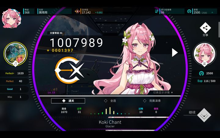 达成于2026/2/18 21:37:37 第四个14级ap,第五个白谱ap,目前个人ap的最难谱 整个曲包最对我口味的一首歌,曾经只能幻想自己能ap,现在已经成为现实 中杀最难的就是旋转,尤其是第三阶段,catch前后的两个圈对我而言更像是视觉干扰,很容易转错,只能多练习来找感觉 第一下左手用力推上去;第二、四次旋转之前都有一只手要打满三下,且第三下很容易打虚 中杀之外的部分基本上经过一定的练习