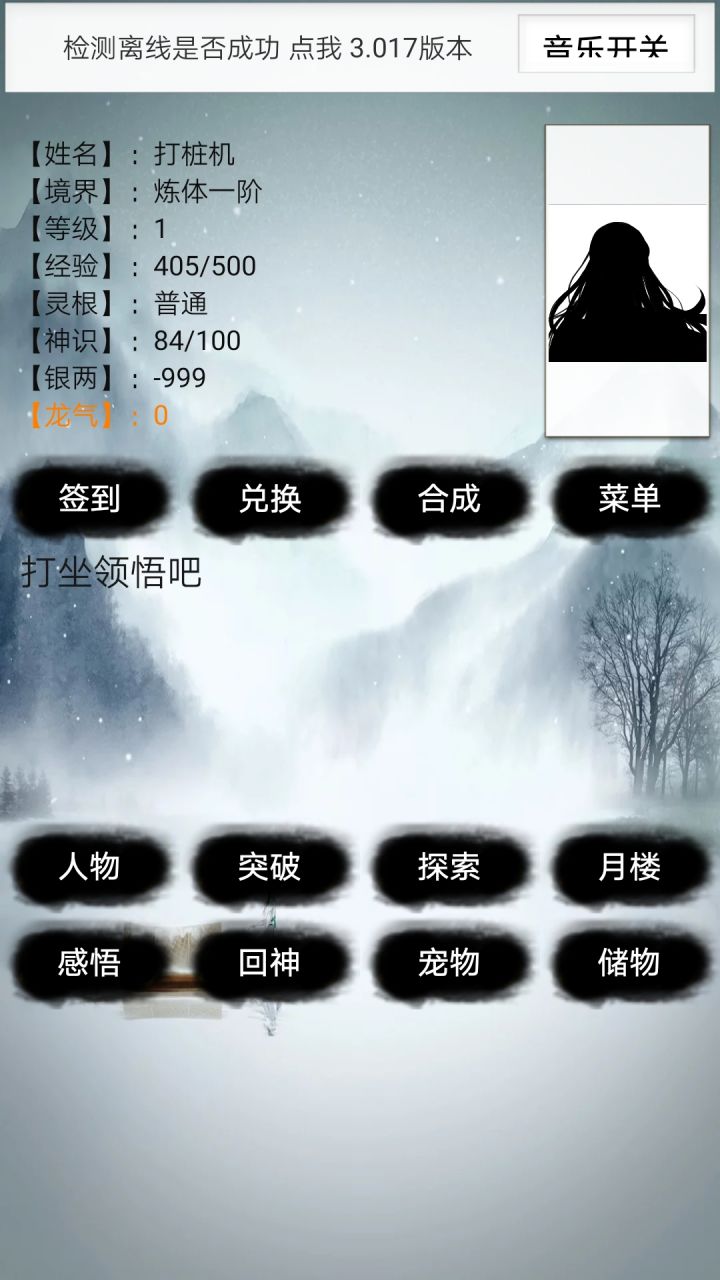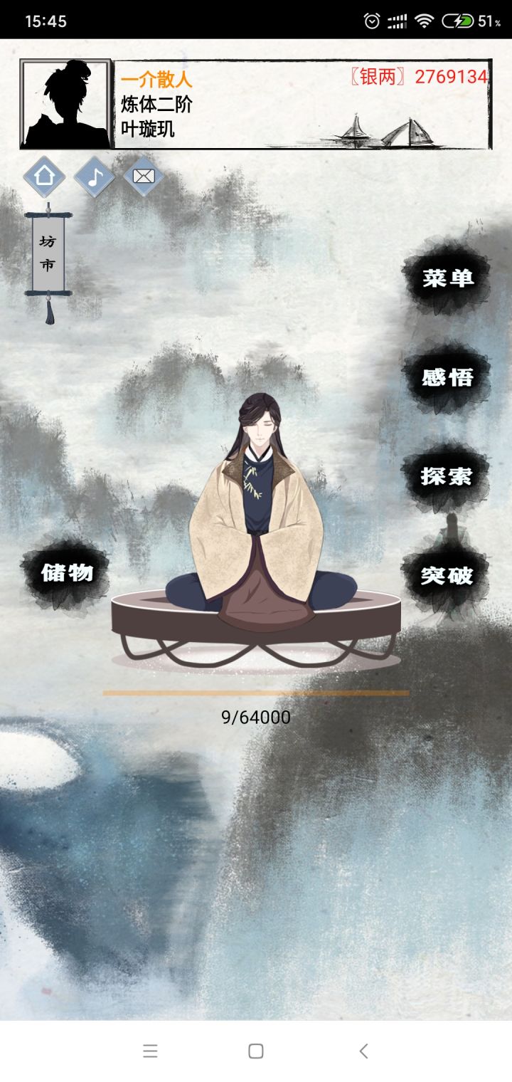 最近由于游戏进行二测,又有很多新玩家加入游戏。但由于游戏本身没有攻略,很多功能不指出很多人又不知道在哪,我就在这里告诉新萌这个基本功能和用法。在进入游戏后会先点击菜单-红包,领取银两红包和灵石红包,会领到很多资源(现版本福利)。然后用手机的返回键返回主页,点击左上角的坊市-银两坊市,购买无影剑和二婶盔。在点击装备讲购买的武器装备。再次返回主页,点击左上角的人物头像-历程,回答还好-修仙历程-练